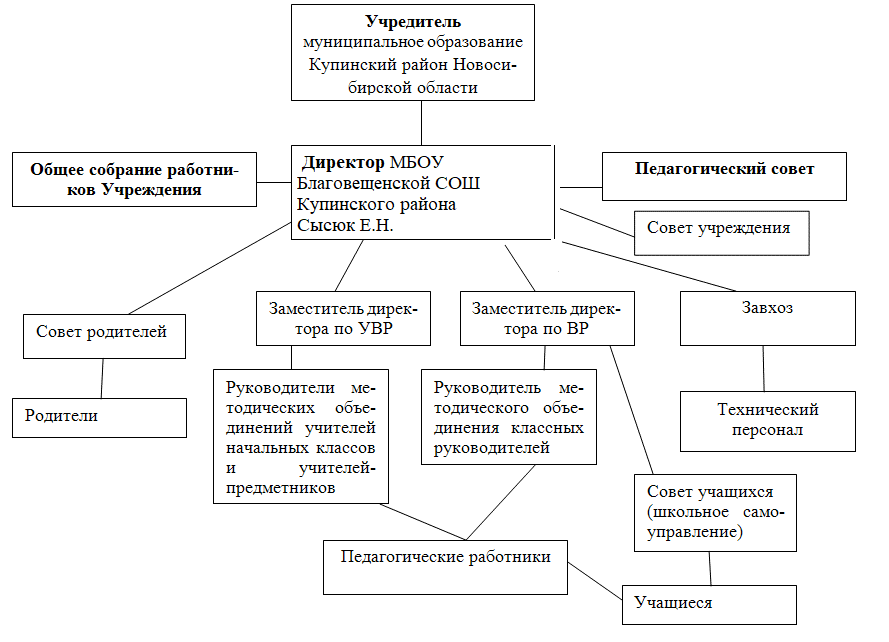 Структура и органы управления образовательной организациейМБОУ Благовещенская СОШ структурных подразделений не имеет.